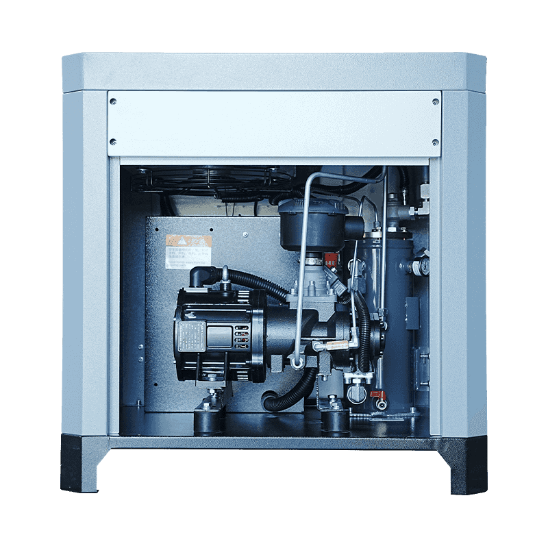 استفاده از موتور سنکرون آهنربای دائمی خنکشده با روغن توسط شرکت فناوری صنعتی ژجیانگ هایدبائو، به حفظ عملکرد پایدار در شرایط بار مختلف کمک میکند. بر خلاف موتورهای سنتی، روتور در این طرح نیازی به جریان تحریک ندارد که باعث می شود بازده و ضریب توان آن بدون توجه به بار ثابت بماند. این بدان معنی است که حتی در شرایط تخلیه، رفتار الکتریکی اساسی موتور ثابت می ماند. با این حال، خروجی مکانیکی دیگر انرژی را به هوای فشرده تبدیل نمی کند، که منجر به کاهش راندمان عملیاتی با وجود بازده موتور داخلی پایدار می شود. جریان راهاندازی پایینتر همچنین تاثیر الکتریکی را هنگام انتقال بین حالتهای تخلیه و بار کامل کاهش میدهد و از عملکرد نرمتر در محیطهای صنعتی پشتیبانی میکند.