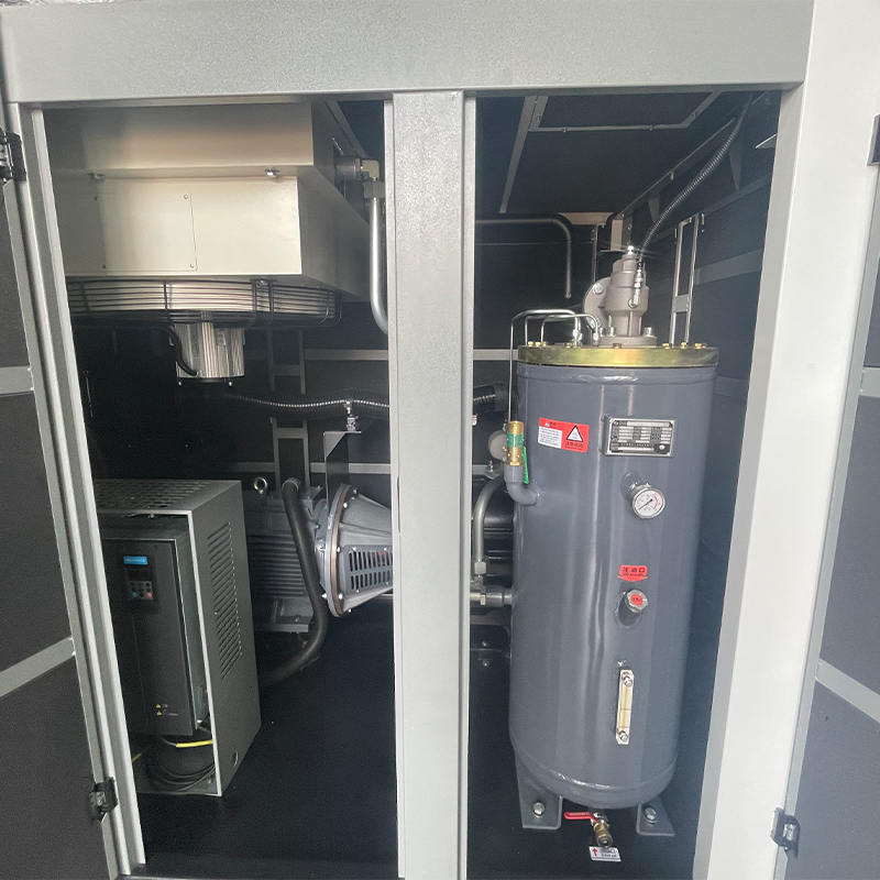 را compressor is equipped with an oil-cooled permanent magnet synchronous motor, which contributes to stable noise control. Permanent magnets with low temperature rise protection ensure that thermal expansion is kept within a manageable range, avoiding excessive friction or mechanical stress that could increase noise. The cooling system maintains the motor at a steady temperature, preventing abrupt operational changes that might lead to noise spikes. Since the motor does not require excitation current, its operation is smooth and consistent, which enhances acoustic stability. The controlled motor speed also minimizes tonal noise, helping maintain a predictable noise level even during prolonged operation.